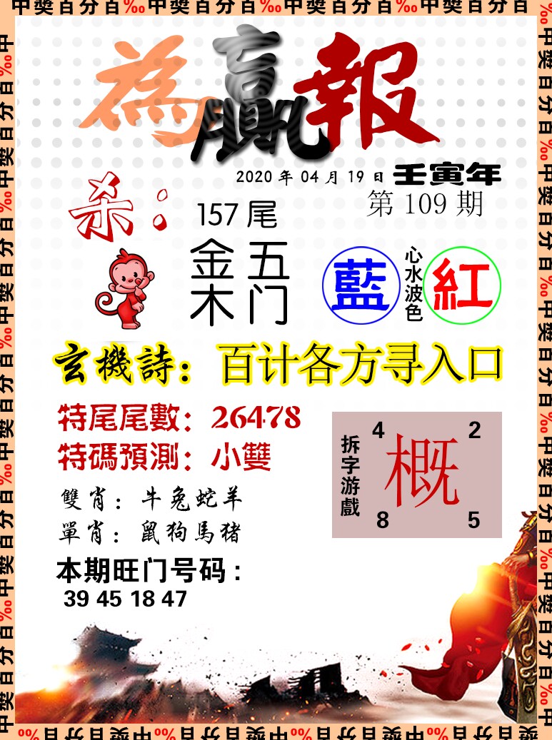 104期绝杀中特【猴肖-0头-6尾-双数】开龙39 |