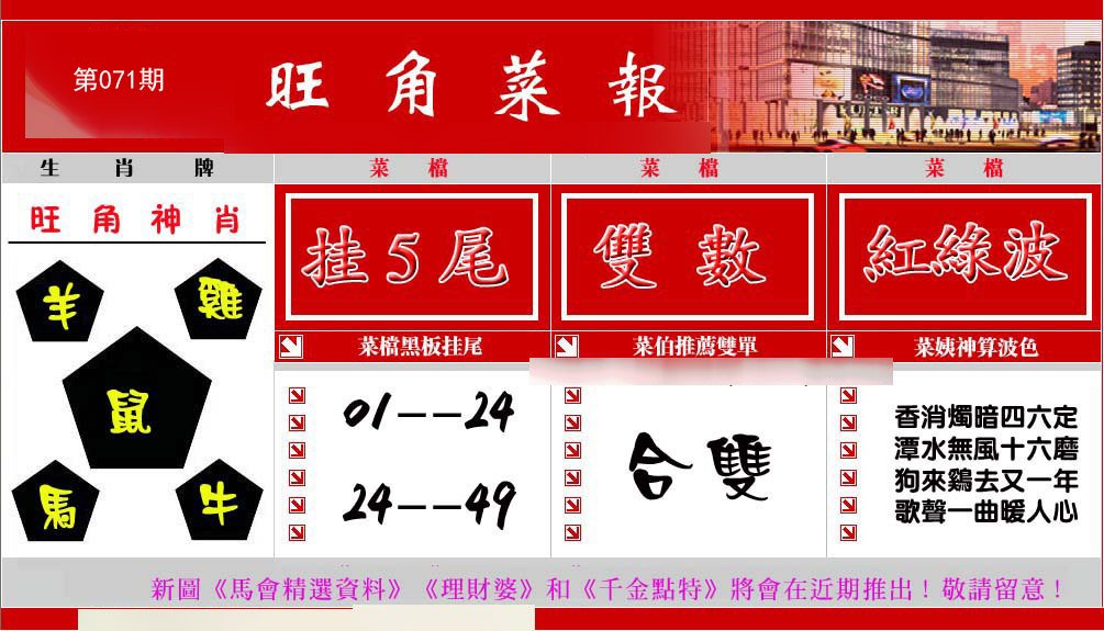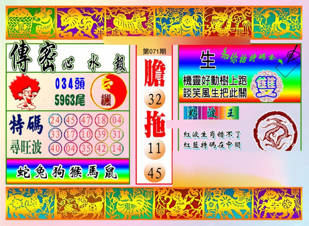 071期:复式连肖【龙牛虎鸡猪鼠】 |
